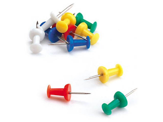 5 coloris assortis. Tête en plastique, pointe en acier.Boîte de 50.
