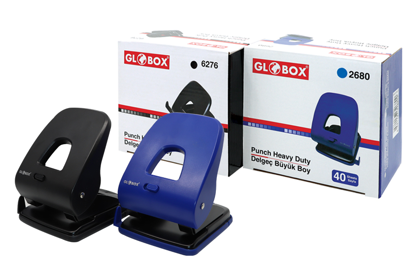 Perforateur NOIR• capacité de perforation: 40 feuilles• boîtier et pièces d’usure entièrement en métal• bac en caoutchouc pour les résidus• poignée verrouillable à plat• Marque : GLOBOX