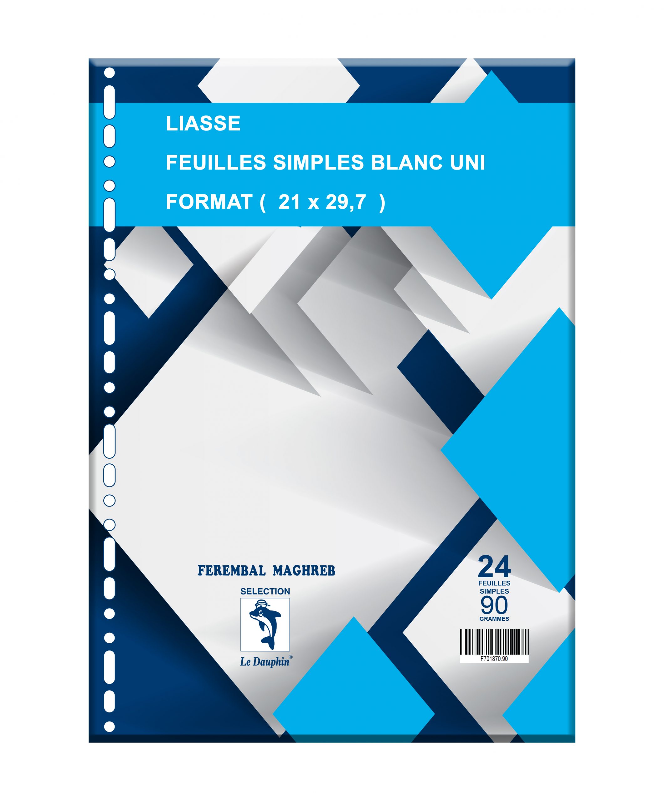 Recharge feuilles simple blanches pré-trouées pour classeur, papier lisse.